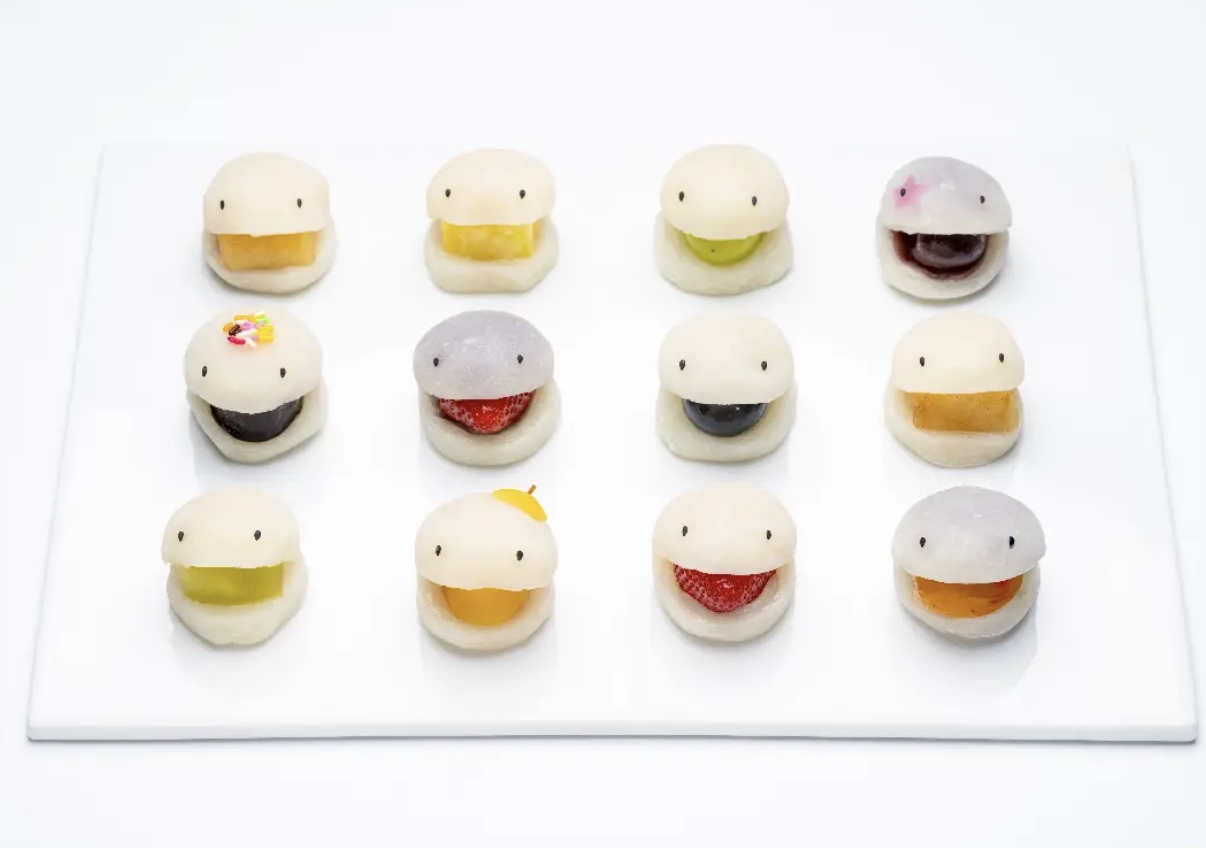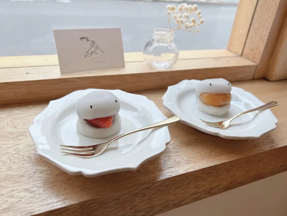 而提到讓「EDO USAGI」這家店聲名大噪的招牌商品,那便是造型性十足的「妖怪大福」,把日式傳統點心的大福,賦予了生動的造型變化,為大福增添了一雙圓滾滾的豆豆眼,並讓內餡半露出來,看起來就像是張口咬住內餡的妖怪,十分可愛。