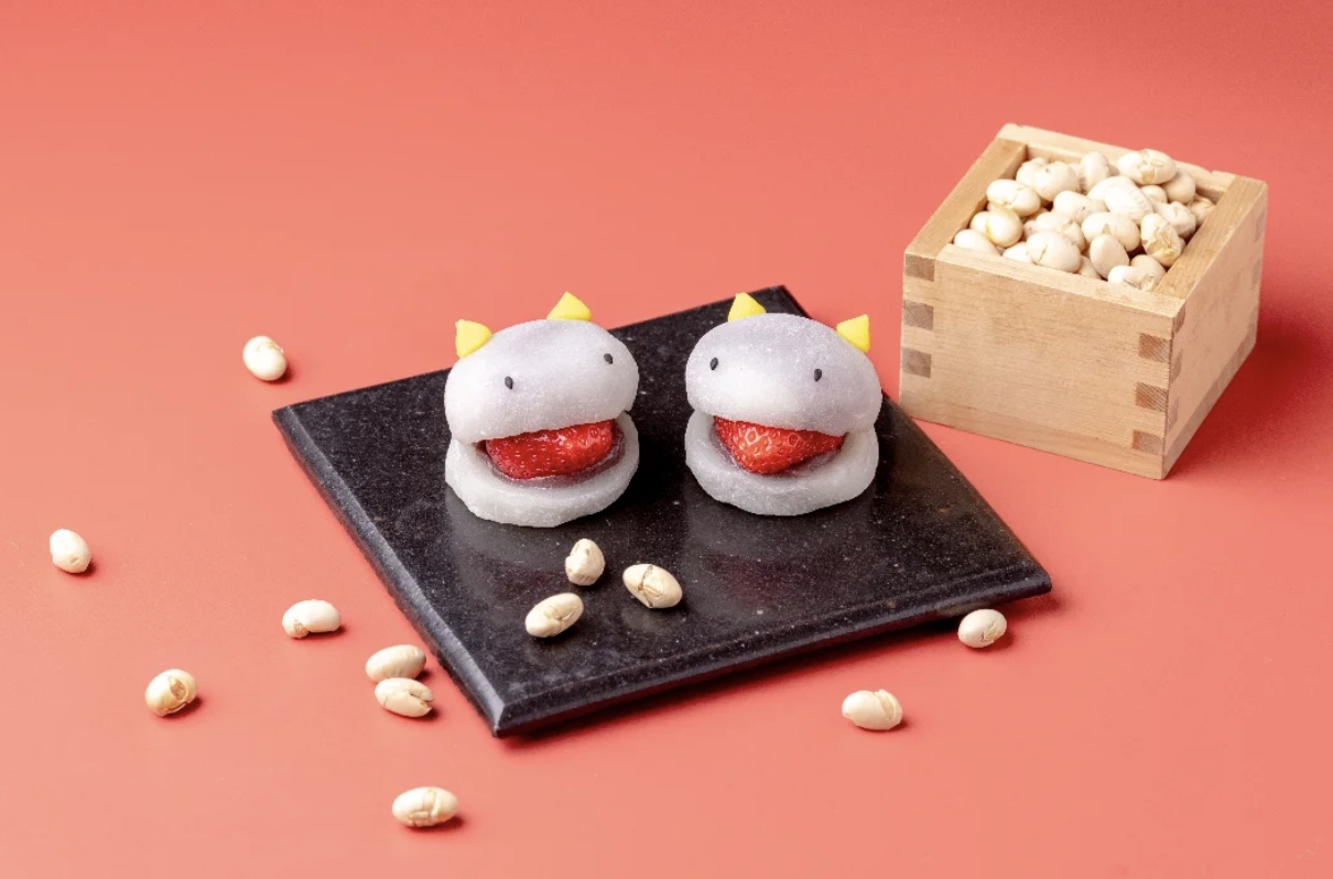 也有雖然在內餡上並沒有做更動,但卻在外型上增添變化的「節分鬼大福」,是為了節分這個日子而特別推出的節慶限定造型,把一般的妖怪大福加上兩隻角,立即化身為惡鬼的模樣。