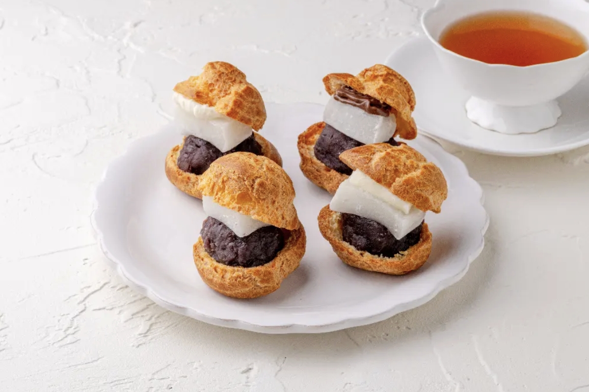 和洋融合甜點:包裹著求肥與紅豆餡的泡芙