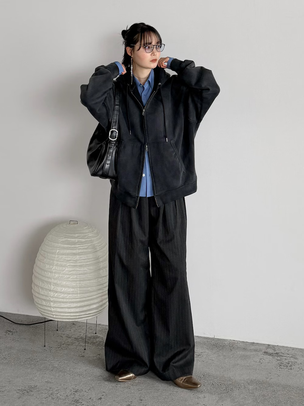 近期在日本掀起一股風潮的藍色襯衫,成為日本女生造型裡能見度很高的款式,選擇藍色襯衫 + 黑色長褲,簡單打造率性休閒的日系氣息,如果想讓中性印象更顯著的話,隨性外搭連帽外套就很好看加分。