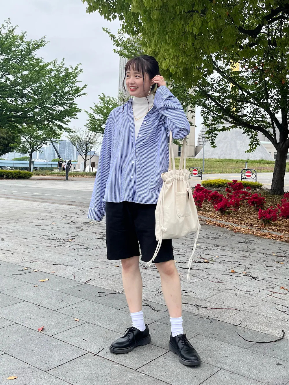 LOOK 01.直條紋襯衫 + 短褲