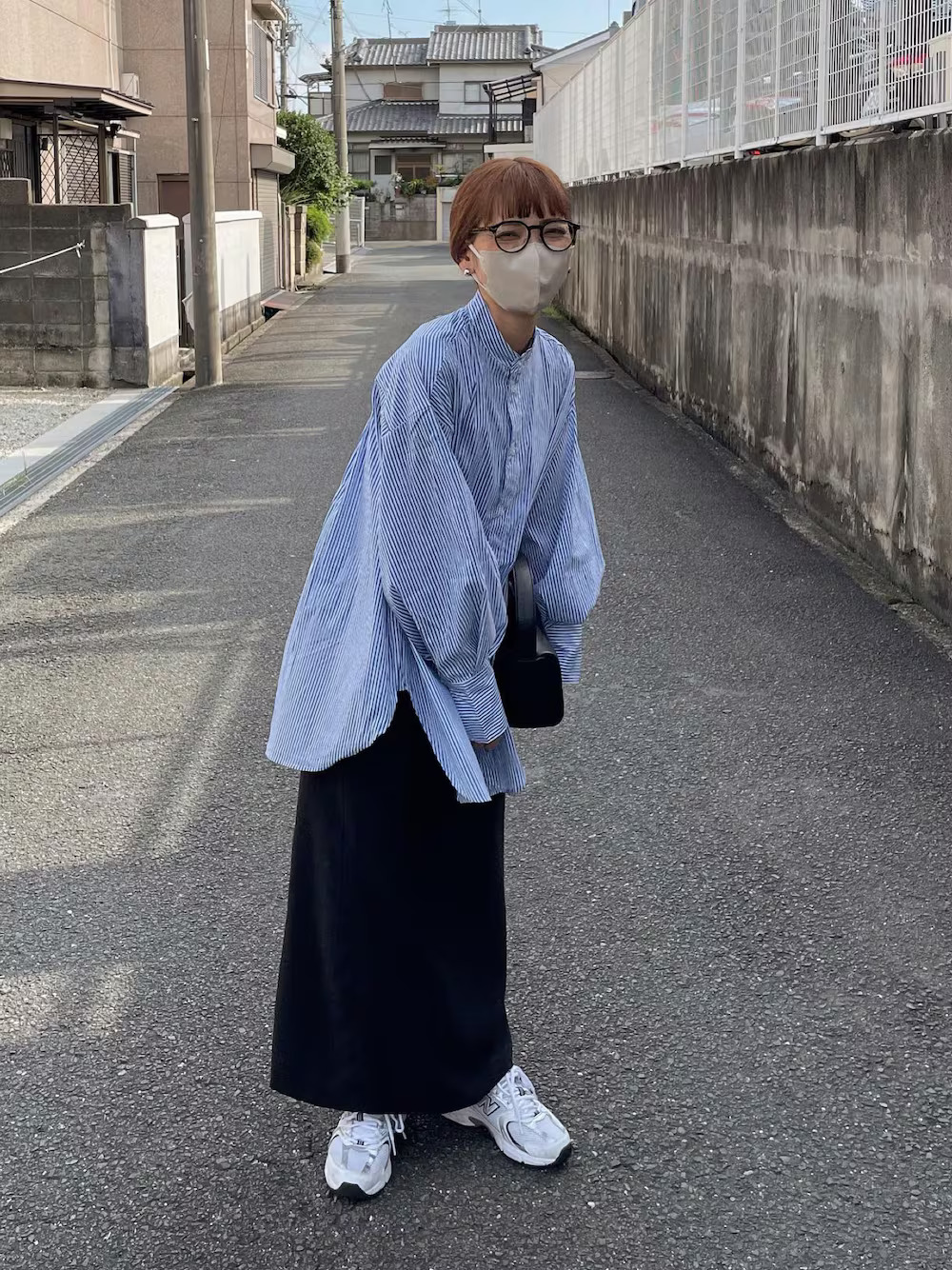LOOK 03.直條紋襯衫 + 直筒裙