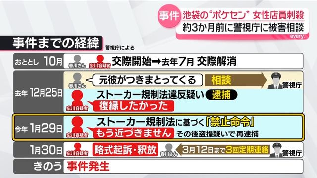 今年1月,廣川大起在簡式起訴後被釋放的同時,也收到了一張警視廳開給他的禁止令,在當時,警方曾詢問廣川是否要接受心理諮商,但受到了廣川的拒絕。死者也在廣川被釋放後接受警視廳的要求,在家附近設置監視攝影機,並暫時避難了整整一個月,但是,當警方提出要換掉寶可夢中心的打工時,卻遭到了拒絕。