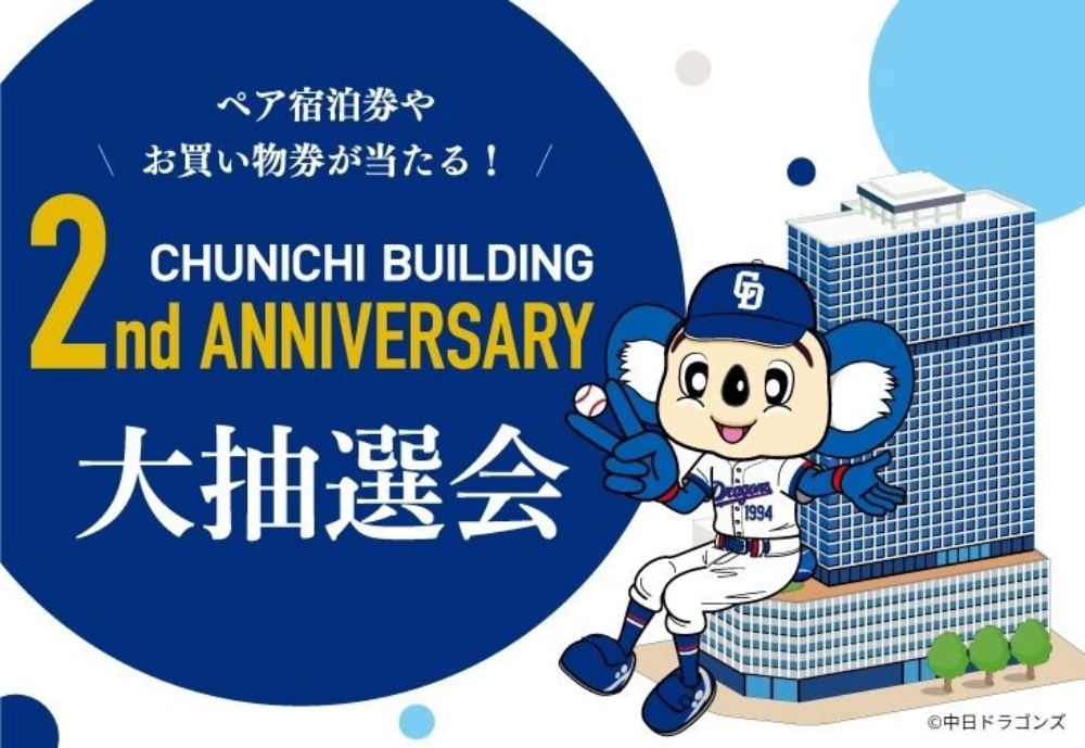 為紀念名古屋・榮的中日大樓開幕2週年,「CHUNICHI BUILDING 2nd ANNIVERSARY」將於4月23日(四)至5月31日(日)期間舉行。今年適逢中日龍球團創立90週年,將推出官方吉祥物「Doala」開幕儀式、福留孝介談話秀、大型抽獎活動等豐富企劃。在這段特別期間,不妨親自前往中日大樓感受熱鬧氣氛。