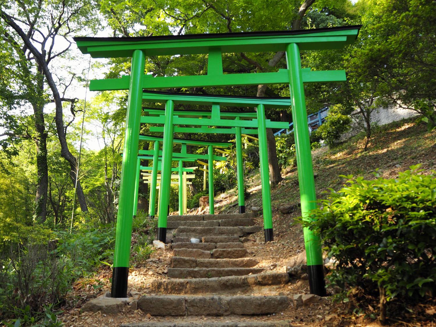 雖然說大部分的鳥居都被漆成了朱紅色,但在廣大的日本之中,也有一些「色違」的鳥居存在,這些鳥居有藍色、粉色、金色,甚至在栃木縣的足利織姬神社境內,就有著七種顏色的鳥居。