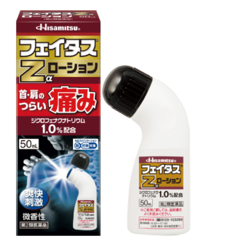 「Feitas® Zα Lotion」則是久光製藥推出的塗抹型鎮痛消炎藥水,特別適合肩頸、腰部與關節等部位有不適困擾的人。作為日本第2類醫藥品,能在日常生活中作為緩解疼痛的輔助選擇。