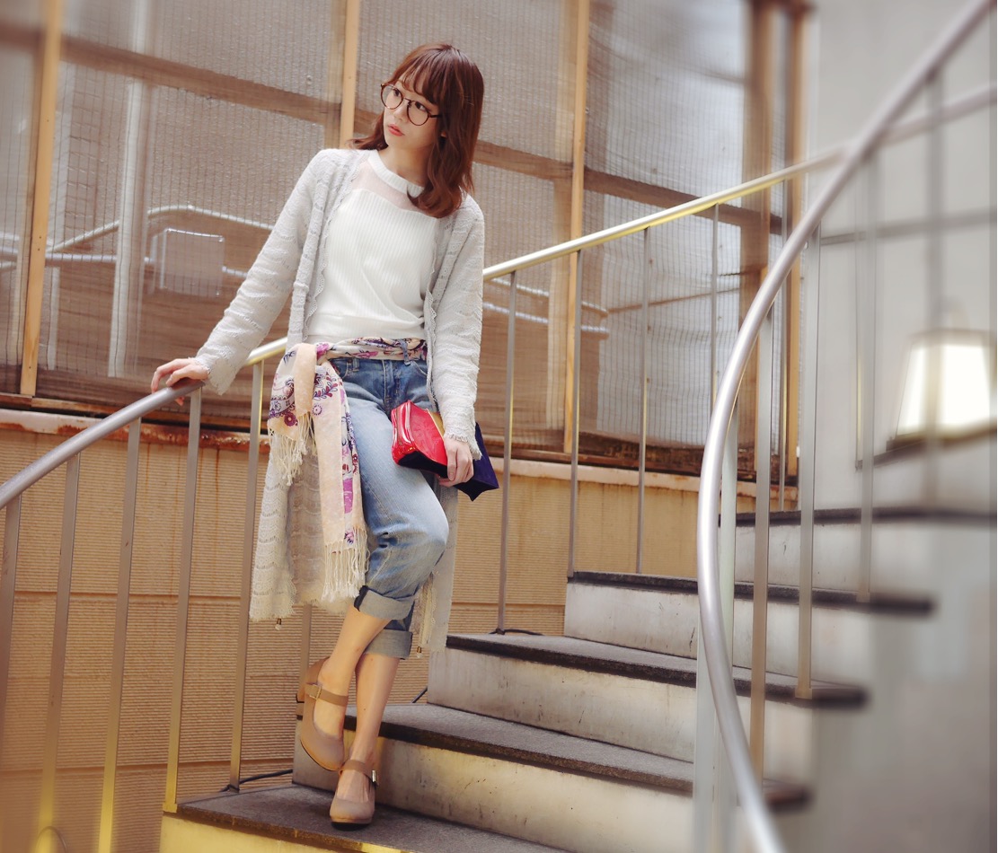 搭配T恤+牛仔褲等等休閒風的打扮的話,就會讓絲巾更加醒目,更加顯現出您的時尚感唷♪