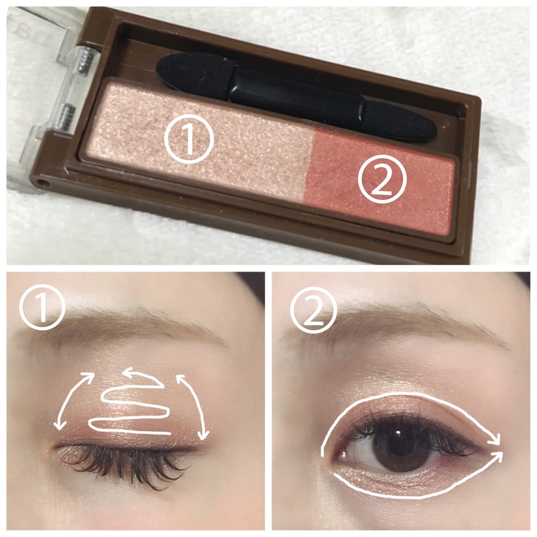 下眼瞼也一樣像是要把整個眼睛框起來般畫上橘色眼影,上下眼皮的眼影最後要在眼尾處接在一起。即使是亮色的眼影,把眼睛框起來的話,一樣會有大眼的效果。