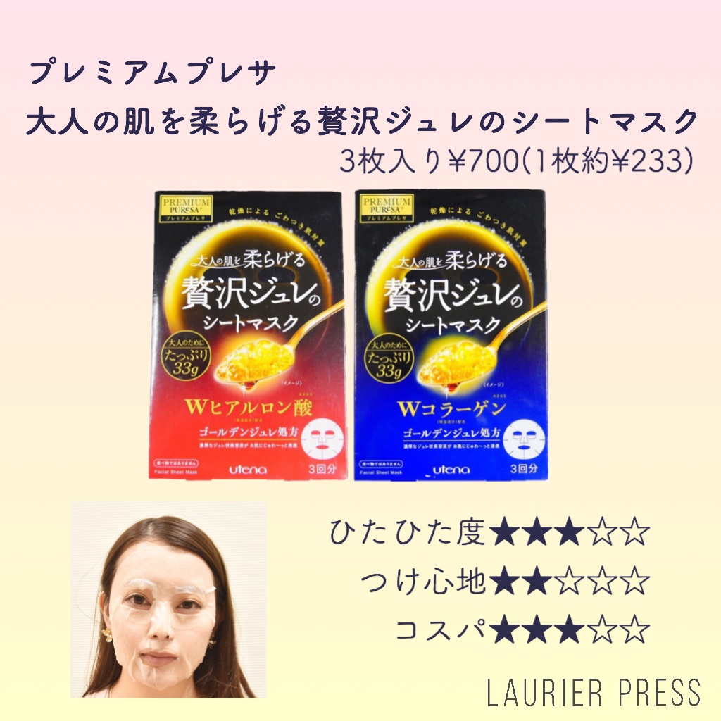 PREMIUM PURESA 大人柔嫩肌膚奢華果凍凝膠面膜W系列(1片約233日圓)