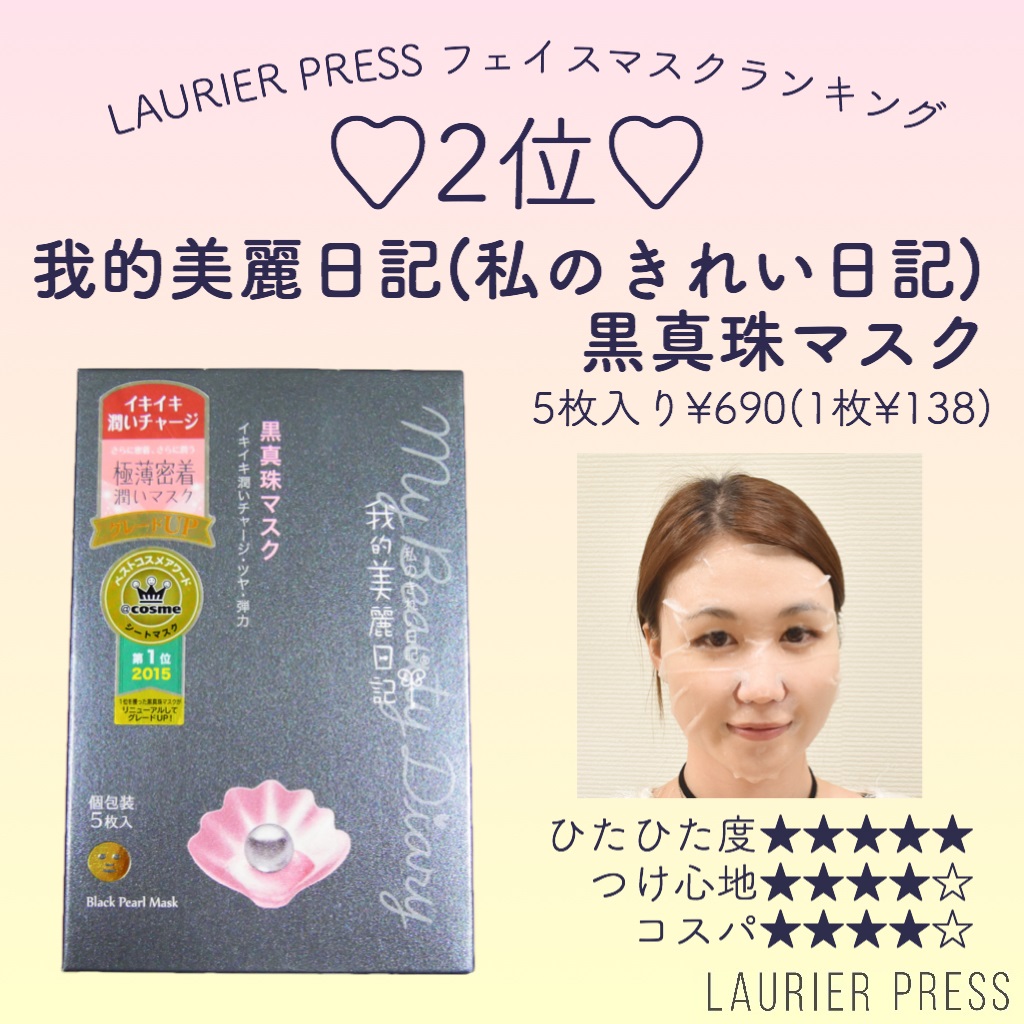 第2名 我的美麗日記 黑珍珠面膜(1片138日圓)