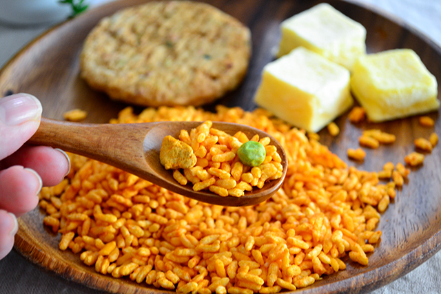 為了攜帶至外太空,所以這些商品主要都是以能夠長期保存與輕量的「冷凍乾燥」商品為主。此種加工方式與日曬等乾燥方法不同,據說即使乾燥過後也不會減少食材本身的營養價值。其中部分食品加水後變成恢復原樣並食用。這次除了「年糕」的餐點外,包裝上都有註明「請直接食用」,所以不需泡水也能直接吃。接下來就來試吃各種太空食品。・雞肉絲飯
