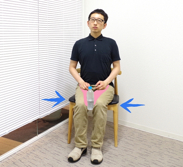 是鍛鍊在腹部兩旁的「外斜肌」的作法。將這個部份拉緊的話,腹部就會出現「緊緻線條」。來鍛鍊大腿內側肌肉吧