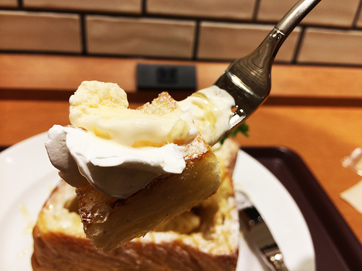 不知道各位有沒有聽說過,有一種外形類似土司,稱之為「丹麥麵包」的點心呢?大約在30年前,一位在京都祇園工作的麵包師傅,有一天突發奇想,不斷研究是否能夠做出類似「法式牛角麵包」一般美味的土司麵包。而他最後所發明出來的新創作,就是現在的丹麥麵包。濃郁芬芳的奶油,加上小麥的香氣,外皮酥脆、內部鬆軟是丹麥麵包的最大特徵,也是一款進貢皇室貴族的知名點心。丹麥麵包與一般的吐司不同,必須由技巧純熟的麵包師傅,花上10~11小時一條一條細心的烘焙,才能烤出成為絕頂人氣的丹麥麵包。沒想到現在,在一般的咖啡廳就能夠品嚐到如此珍貴的麵包。而販售的地點,就是這一次要為各位介紹位於東京淺草橋的「MIYABI CAFE」。這間店當中最值得推薦的商品,就是使用丹麥麵包所製作的蜂蜜吐司。在酥脆的丹麥麵包中,加上蜂蜜以及冰淇淋,最後在上面擠上厚厚一層鮮奶油,讓人沉浸在最高檔美味的甜品饗宴之中。原本直接吃就十分美味,再加上蜂蜜以及冰淇淋、擠上新鮮生奶油之後,就成為炙手可熱的蜂蜜吐司,對於喜歡蜂蜜口味的顧客而言真是人生一大享受。。位於淺草以及秋葉原附近的淺草橋。如果最近您有機會到附近逛逛,務必請您親自上門一探究竟。在微甜的丹麥麵包裡散發出令人心醉沉迷的奶油香,相信只要吃過一次就會令您永遠無法忘懷喔!店名 MIYABI CAFE 浅草橋店地址 東京都台東區淺草橋1-26-1 Izupurabiru 1F