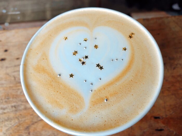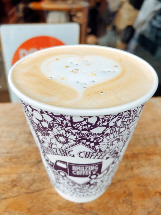最後在咖啡上的手繪愛心散發著一股暖流,上面再撒上金色的小星星和銀色的珠珠,太可愛了,處處都令人驚奇,難怪是Amazing Coffee!