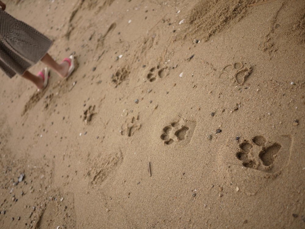 「在海灘上會讓人驚訝、受到注目」「會有種變身成動物的感覺!」得到等等反響的『ashiato』。其實、有5個種類。不只是有貓咪而以。「山貓」、「猴子」、「貓頭鷹」、「蝙蝠」、「迅猛龍」等動物(恐龍)悄悄的出現。「最有人氣的還是山貓!」(負責人)果然、在木屐的鞋底裡裝上肉球的「山貓」還是最有人氣的!
