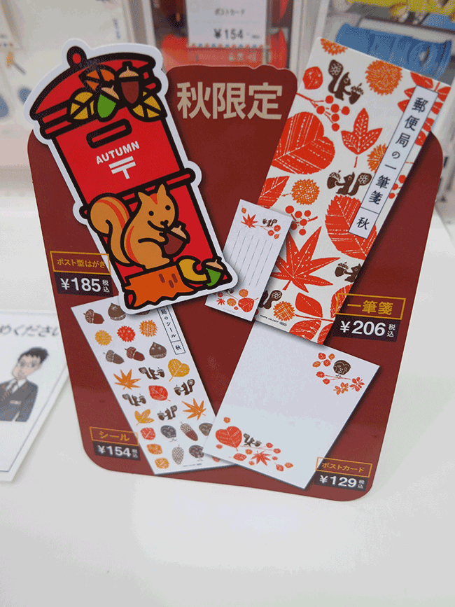 除了地區限定明信片外,還有期間限定明信片,像是最近剛結束的萬聖節限定明信片,幽靈與南瓜人就超可愛,另外各式秋季楓葉明信片與秋季限定商品也已經推出囉!