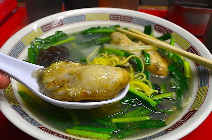 然而,誠如大家所知,築地場內市場已決定將在2016年11月搬遷,目前在築地場內市場的店家將在這1年內消失無蹤。也就是說築地場內市場明年真的是最後一年,以後再也不能在目前的氛圍下享用美食了,相當令人傷感。在這樣的築地場內市場,其實有冬季限定的美食呢。這次嚴選6樣築地場內市場的冬季限定美食為各位介紹,說不定只剩今年冬天吃得到了。【1】「野次満」的牡蠣拉麵這間是在築地場內市場被評價為美味的中華料理店之一。不僅大燒賣及夏天限定的中華涼麵相當有名,冬天限定的牡蠣拉麵也是一絕。這道牡蠣拉麵能紮實地品嚐到牡蠣濃厚的味道,堪稱是極品的牡蠣湯麵。而且韮菜及洋蔥等蔬菜和煮得恰到好處的牡蠣絕妙搭配,真的是只有這裡才能吃到的絕品牡蠣拉麵。