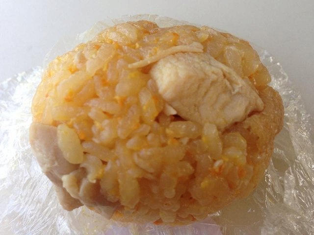 而這個則是雞肉口味的蜜柑飯糰。雞肉在愛媛也是名產之一,唐揚炸雞和帶骨雞腿也是受歡迎的逸品。這令人滿懷期待的雞肉,滋味有深度,又很多汁。蜜柑的香氣去除了雞肉的腥味,扮演著法國料理中會出現的柳橙醬汁般的角色。只有在愛媛才吃得到的「蜜柑飯糰」。是到訪道後溫泉時,希望你務必要嚐的逸品。(松岡佑季)