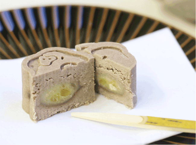 かすてら=蜂蜜蛋糕;申=猴年。這個上面鋪滿金箔的蜂蜜蛋糕,已經切好猴子形狀,直接吃,或者把旁邊剝開以猴子形狀吃,大家會想怎麼吃呢?從頭吃?從尾巴吃?好像又是另一個難題(笑)。