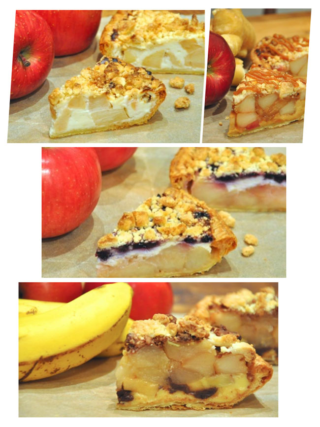 在各種節日慶典中,也會推出應景的特殊口味蘋果派,內用外帶都很適合。例如以酸酸甜甜的覆盆子醬和香濃可口的開心果做成的聖誕節蘋果派、將南瓜泥與蘋果結合在一起的萬聖節蘋果派、白色情人節登場的白巧克力和草莓口味的蘋果派等等,每一種都好令人期待。另外配合母親節推出的四種口味組合在一起的豪華蘋果派組,可以任選兩種定番口味和另兩種季節性的限定口味也非常吸引人,去年吃到的藍莓起司和優格的不定期限定口味蘋果派都還深深留在我的腦海中呢!