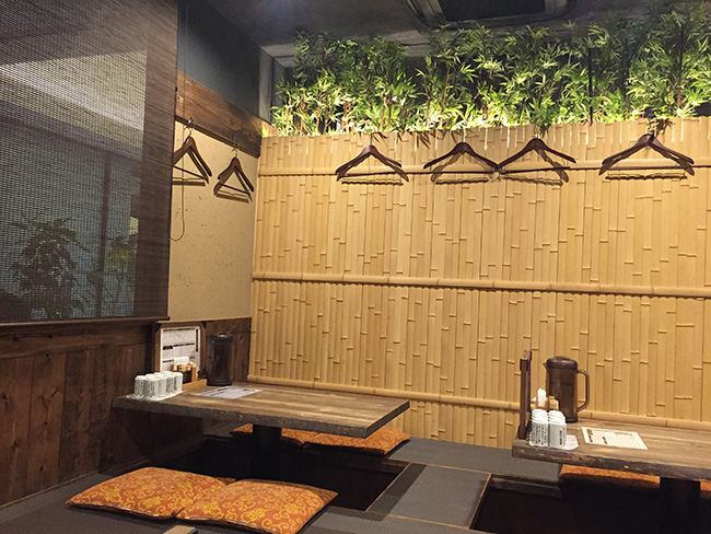 而餐廳內部的座位有分普通桌椅跟和式座位,以竹子跟綠葉為裝潢重點的和式座位,舒適到一坐下去就不太想起來了。