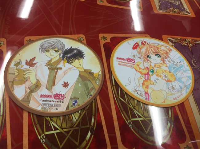 點菜後會隨機附送角色的杯墊。左邊那款雪兔和桃矢簡直喚醒了無數少女的腐女魂啊!能不能抽中便得看你的運氣了!
