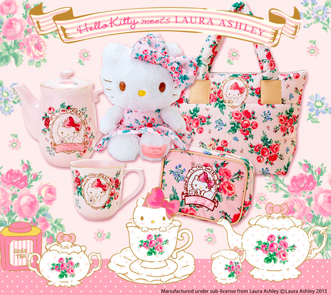 Samantha Thavasa,OUTDOOR,龍族拼圖,ONE PIECE,施洛華,MONO橡皮擦,以及XJAPAN的Yoshiki…… 等等與其他許多品牌都曾經合作生產過許多商品的Hello Kitty,這次將發售與Laura Ashley一起合作的商品呢。