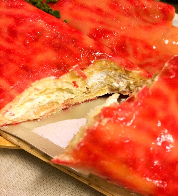 肉的部分是日式可麗餅呢。用日式可麗餅夾著膨鬆的海綿蛋糕跟鮮奶油的蛋糕。非常好吃。外觀是「霜降牛肉」。