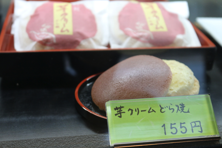 這款在烘烤成有些濕潤感的餅皮裡面,夾著微甜滋味的地瓜奶油醬的銅鑼燒,可說是凝聚了老字號和菓子店一流技術的地瓜甜點。