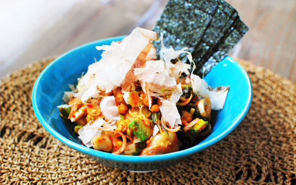 即使是下酒菜,有女孩子喜歡的納豆和泡菜等發酵食品&攝取到亞麻仁油,就是一道超級時尚的小菜!