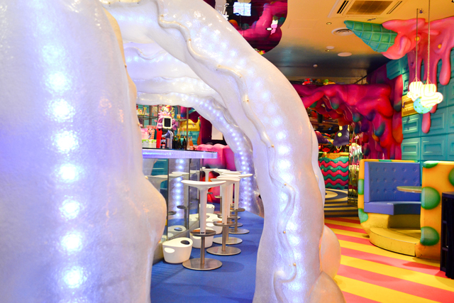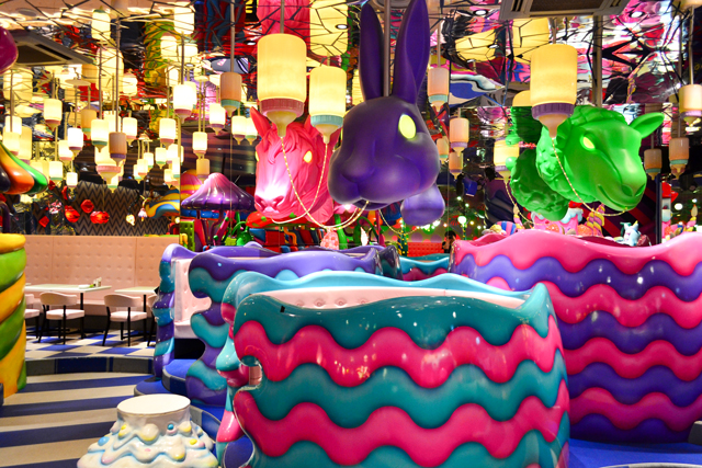 大家知道位於原宿的“KAWAII MONSTER CAFE HARAJUKU”嗎?這間“咖啡廳”是由經營各式各樣主題餐廳的Diamond Dining與「6%DOKIDOKI」的企劃者、也是卡莉怪妞的美術設計者──増田Sebastian先生所合開的。光聽到這樣子的消息,就會讓人不禁猜想這會是什麼樣的店了吧?店內裝潢像這樣!