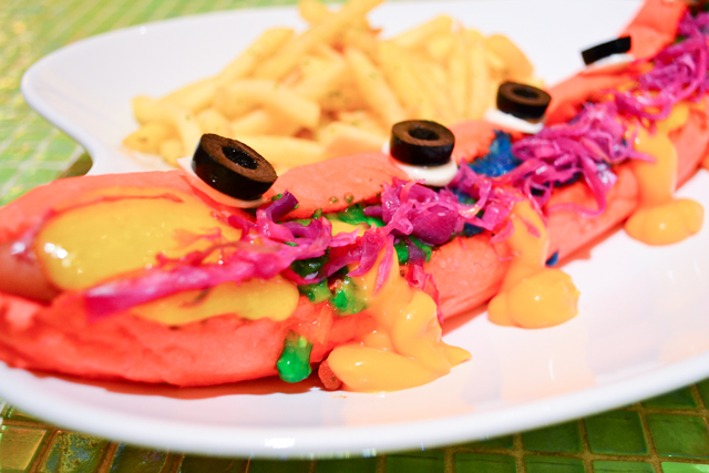 其中使用了大量奇怪又可愛裝飾品,店內充滿著繽紛多彩的螢光色。可說是増田Sebastian著手設計的「可愛」世界完整呈現於店內。這次聽聞為了紀念開幕1週年,有販賣「螢光粉紅麵包加上彩虹顏色起司製成的熱狗」,讓小編很有興趣。所以我就立刻前往一探究竟了。到底是什麼樣的熱狗呢……。搭配上店內的圖片,將在此介紹「KAWAII MONSTER CAFE HARAJUKU」!像是「可愛主題樂園」的「KAWAII MONSTER CAFE HARAJUKU」!