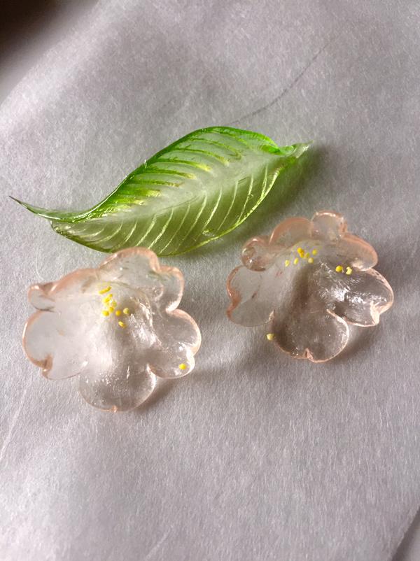 被製作成輕薄的櫻花瓣,帶著透明感又美麗的粉紅色,彷彿輕輕一碰就會碎掉一般。將櫻花的華麗感和端麗的樣子製作的十分傳神。甚至模擬花粉的部分,也用了黃色的砂糖裝飾。非常的精緻!可以和櫻花一起購入的葉子有平糖,就像新生般柔嫩的樣子,也高超的再次重現清晰的葉脈。好想要一直擺著裝飾欣賞的花瓣、葉子,是激發少女心的和菓子。◼︎還有仿照秋天楓葉的「照葉」!其實另外還有秋天的意象,仿照楓葉的有平糖「照葉」。黃色葉子的一部分帶有紅色,這樣的漸層十分的美麗。