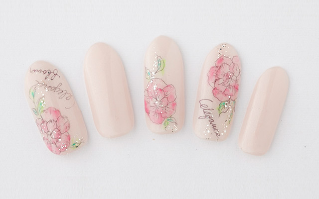 花朵圖案的指甲相當受到歡迎。「但是可愛風的指甲好像有點...過度幼稚了吧?」如是想的成熟女子們,請務必來看看以下的「花卉彩繪指甲」。這是將莖葉等都細緻的描繪,或保留花卉原始配色的設計,即使是參加宴會也能使用。何不挑戰看看呢?