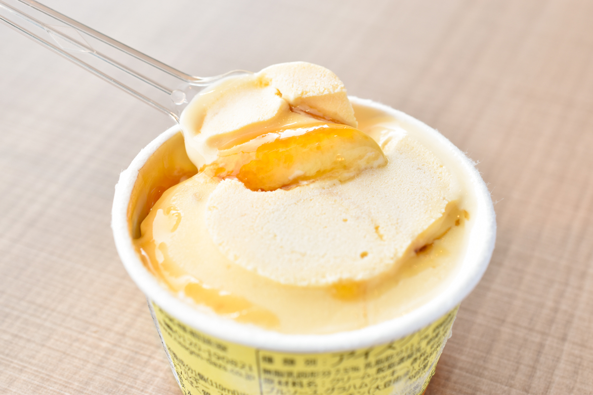 挖一口沾在杯緣上的楓糖漿部分,送入口中看看。一放入口中,楓糖的香氣就在整個口中擴散開來,臉上不由得露出滿足的表情……。然後緩緩的,愈來愈感覺到卡士達的甜味。一面散發出濃厚的甜味,而那清爽的後味又很明顯。其實它還添加了全麥麵粉製成的全麥餅乾,好像是擔任既可以提升滋味又可以讓口感變得更好的角色。