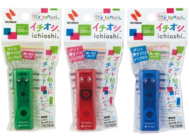 而查了一下製造商,發現NICHIBAN這個公司,不只是生產膠水膠帶,連OK繃以及治療雞眼用的貼布也有製造販賣!不過既然今天的主題是文具,就在順便提一下NICHIBA出產的可愛文具啦!像這個膠台,是已經包含膠帶一起賣,顏色繽紛的膠台配上可愛的紙膠帶,怎麼能不心動呢?!而紙膠帶不僅可以用來包裝,貼在塑膠傘上就不怕不知到哪一把是自己的了唷。