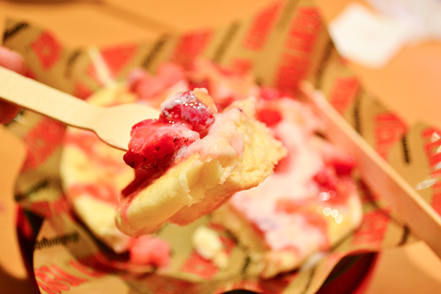 不會太甜,剛剛好!蓬鬆又柔軟的素材作為迴轉壽司的點心非常合適。對吃完壽司的人來說,是大小剛好又非常美味的點心。它吃起來比我預期的更道地,不愧是「壽司郎」。其實這個鬆餅是在代官山名店「VERY FANCY」指導下製成的。使用大量蛋白霜的食材本身,就像它的名字一樣「ふわとろ」(FUWATORO,形容軟綿綿的),非常好吃。因為是期間限定特色料理,售完即結束活動。請大家要吃就趁早喔!(西門香央里)