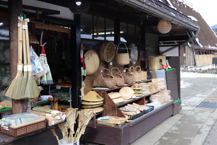 這裡販賣著許多竹籃、竹掃帚、蕎麥麵竹簍盤與稻草編製而成的室內拖鞋等,不禁讓人想買回家使用的各式商品。在此邊走邊逛邊吃非常有趣,而手工與木製工藝品等商店林立也是常積雪的飛驒地區特有的景象。這一定是因為以前在冬天無法下田耕種時,居民都在家中製作這些生活用具的關係吧!
