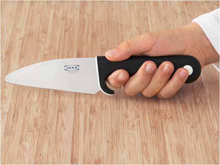 這個系列的碗盤,不管是單獨使用,或是與其他品牌混搭使用,都非常地適合。如果舉辦Home party時用來擺盤會很出色呢。此系列使用強化玻璃材質經久耐用,可放入微波爐、洗碗機,由於碗盤都很耐用,即使家中有小朋友,拿出來用也不擔心。人氣不滅的最大主因當然是在於價格囉!每件只要日幣¥89。▼【IKEA】日本媽媽票選人氣廚房用品第2名「SMÅBIT 兒童專用菜刀&削皮器」日幣¥799