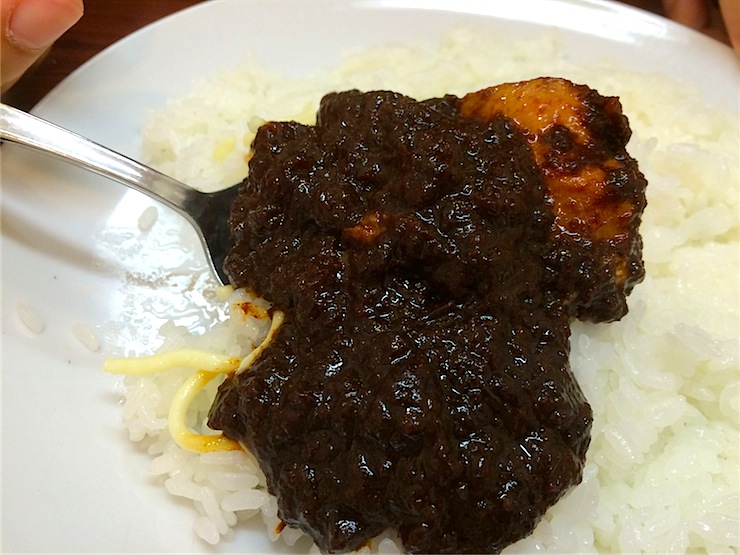 他們家我想推薦的是拷瑪咖哩。濃稠的拷瑪咖哩,1人份就使用了2顆洋蔥。拷瑪咖哩內的洋蔥是沿著纖維切以做出獨特的濃稠感,仔細炒透的洋蔥展現出充滿甜味和濃厚感的滋味。