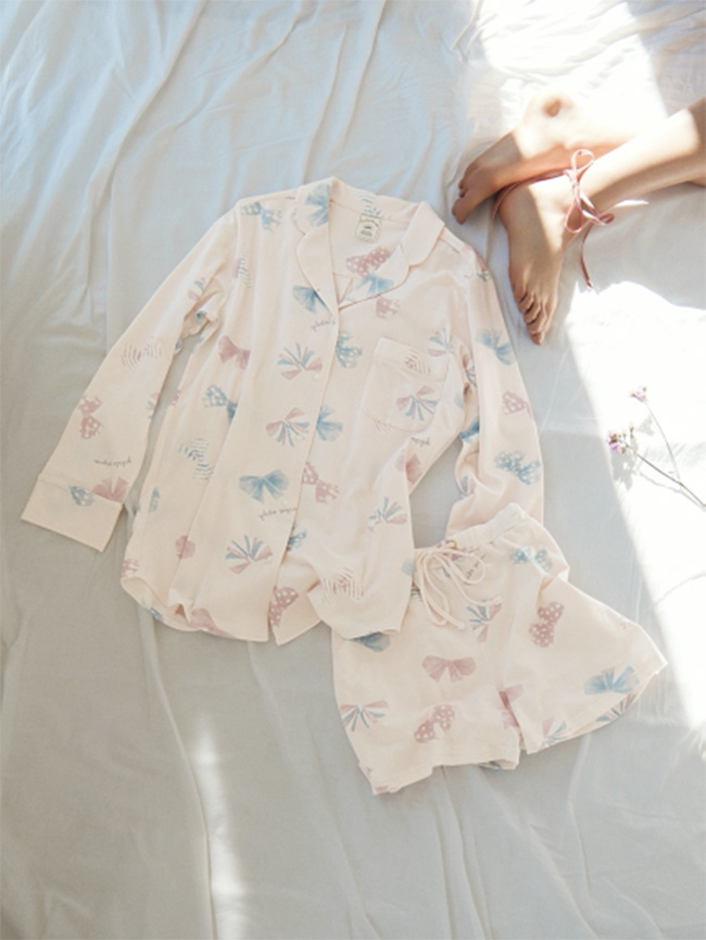 gelato pique定番人氣的蝴蝶結系列,淡淡的粉色與藍色搭配,可愛到讓人心動不已,貼合肌膚的舒適度更是不用懷疑,完美的垂墜感使身為大人的你維持應有的女人味,一樣提供粉與白色挑選,另外除了有長短褲可搭配外,也有吊帶背心的涼爽選擇。