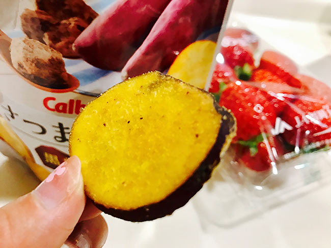 其實之前CALBEE也推出過用蕃薯做成的蕃薯片,那時吃了就已經很驚艷了,沒想到本來是薯片的產品,利用另一種食材也有很棒的效果,比馬鈴薯片多了一種香甜的滋味。