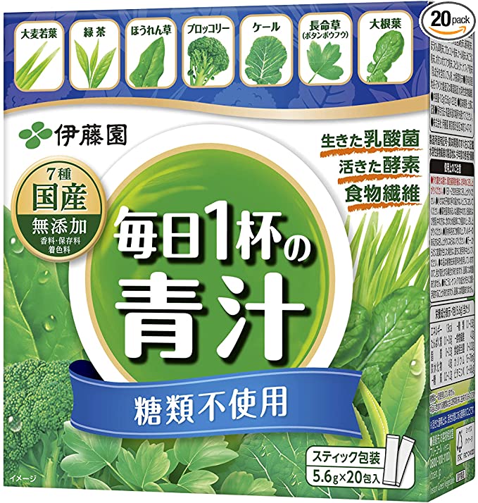 ■緑茶ですっきり飲みやすい 毎日1杯の青汁/每日一杯青汁無糖版 乳酸菌+酵素(20包):1,410日圓
