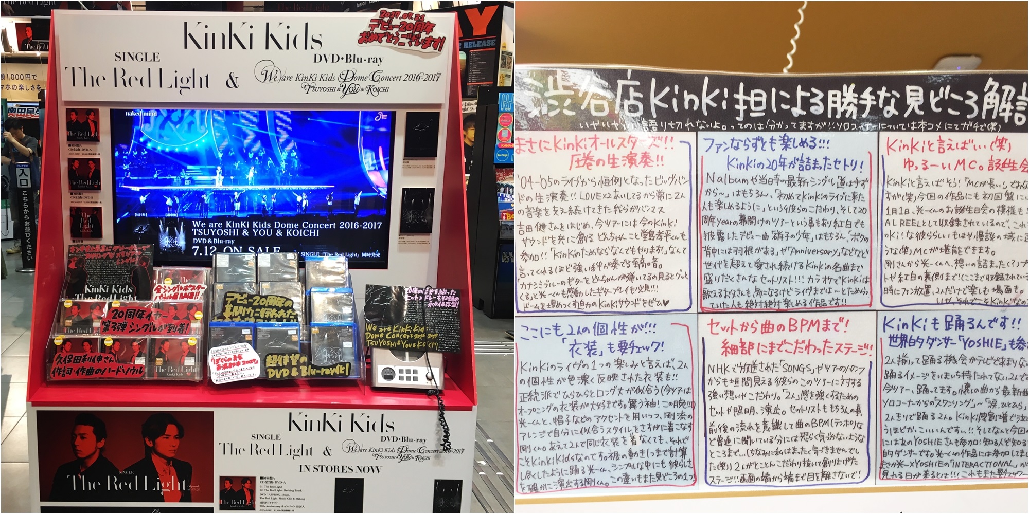TOWER RECORDS澀谷店則是有「KinKi 擔」店員寫下密密麻麻充滿愛情的解說,而發票上還有歌迷拿到一定會超級開心的特別小秘密喔!來日本遠征20周年橫濱演唱會的KinKi Kids歌迷,千萬不要錯過!