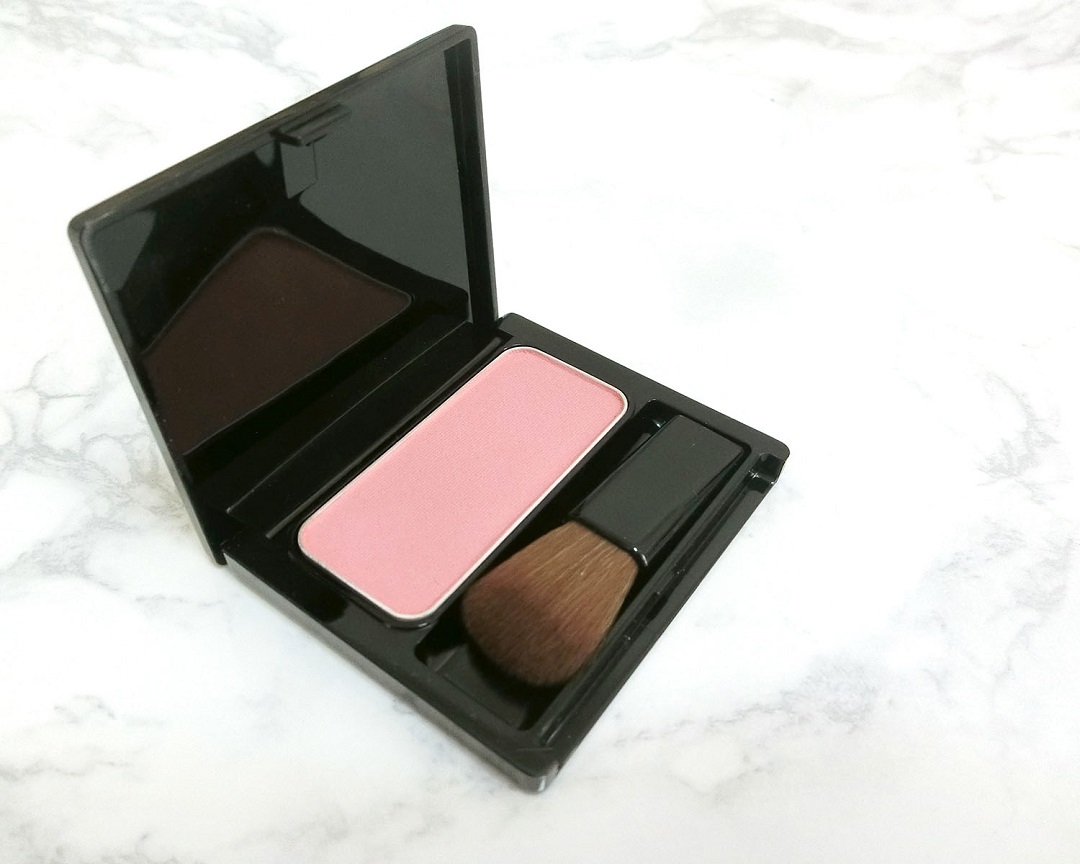 『DAZZSHOP 透感腮紅』上起來很服貼也很自然。雖然比較淡但是藉由疊層的技巧就可以調整顏色,推薦給不大會上腮紅的人。