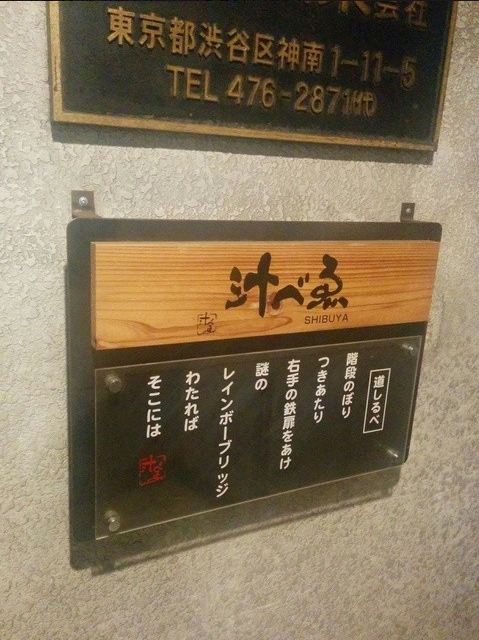 來日本旅遊,吃膩了旅遊書推薦的餐廳了嗎?今天要來跟大家介紹一家,日本朋友推薦的在地創意居酒屋「汁べゑ」(shirubee)!「汁べゑ」不僅東西好吃,位置超隱密也是特色之一,據說第一次去,有99%的人找不到店在哪(笑),根據自身體驗,要不是有熟門熟路的日本朋友帶路,真的很難找到!揪竟到底有多隱密呢??首先先走到餐廳所在的ダイネス壱番館(跟渋谷tower唱片同一條路上)恩….看起來不像是一般的居酒屋的感覺….