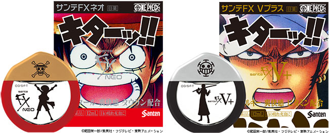圖片來源日本藥妝店必買文章中,很常見的Santen FX這次與海賊王出了聯名款!粉絲們應該都尖叫了吧!這次推出了「魯夫」款及「羅」款,瓶身的顏色分別用他們身上所穿的衣服顏色來決定,「魯夫」款等於銀裝、「羅」款則是金裝。當伴手禮買回來送人也挺不賴!清涼感:5★★★★★(魯夫款)