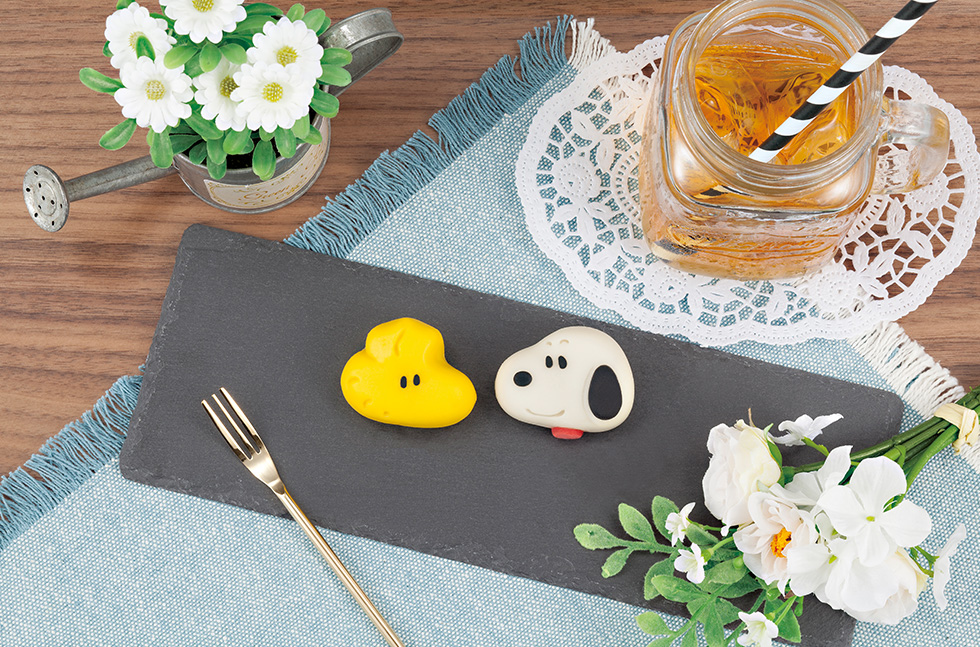 引用這款和菓子不僅完整呈現史努比的可愛面貌,連經典的紅色項圈都是用和菓子捏出來的。史努比款的和菓子裡有巧克力內餡,而小黃鳥糊塗塌客和菓子的內餡則是卡士達奶油口味的。
