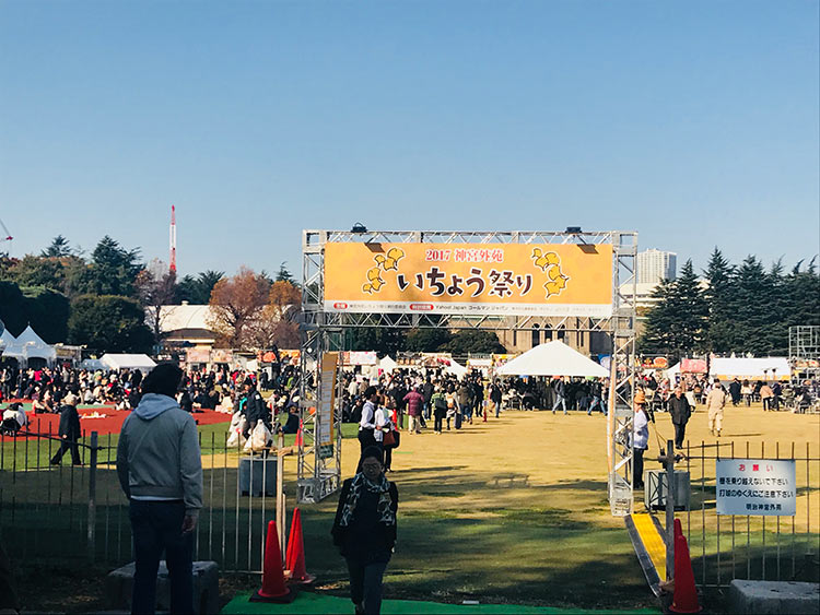 在大道的盡頭處每年都會舉辦銀杏祭,今年從11月17日到12月3日上午10:00~20:00,祭典攤位提供各式各樣的美食,如果前面的SHAKE SHACK太多人排隊進不去,可以來這裡買幾樣小吃坐在草地上也不錯喔。