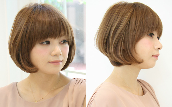 天然的短髮髮型。稍微齊耳更能表現出臉周圍的輕盈。因為有斜劉海,也不會顯得太青澀的成熟髮型哦。